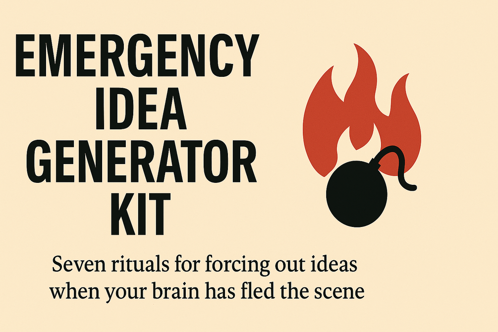 Welcome to the Emergency Idea Generator Kit—a dead-serious, highly questionable toolkit for creators, writers, and weird thinkers who need to ship, not suffer.